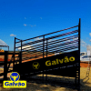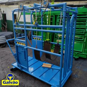 Brete para casqueamento de gado, acompanha assoalho em chapa metálica, 2 barrigueiras com catraca e corrente conjugadas e pescoceira de pega rápida.