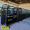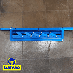 Capador para ser parafusado no corredor, reforçado com pintura anticorrosiva e acompanha bastão denominado cambão para manejo do animal