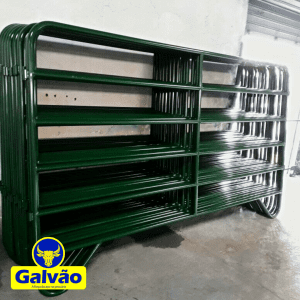 Redondel Metálico Galvão, dividido em módulos de 3 metros, denominados modulo ” fechamento” somente gradil e ” modulo com porta” parte gradil, parte porta de acesso.