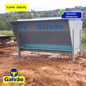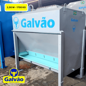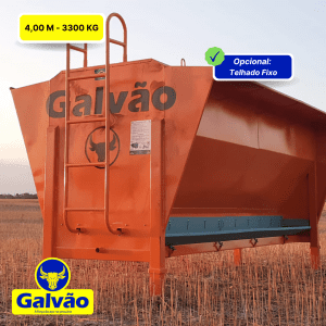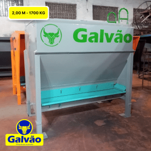 Silo cocho Galvão, com dupla função, armazenamento e fornecimento de ração para o gado, fabricado em aço com dupla camada de pintura.